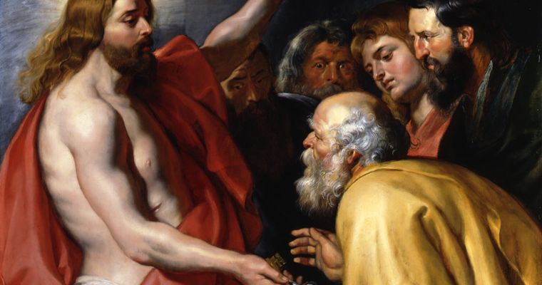 Peter Paul Rubens (1577–1640). Olje og maling på lerret og panel, 182,6 x 159 cm, Gemäldegalerie Berlin. Beretningen rundt løftet om tildelingen av nøklene til himlenes rike finner vi i evangeliet etter Matthaeus 16, 13-20 (DNB 1930), Men da Jesus var kommet til landet ved Cesarea Filippi, spurte han sine disipler og sa: Hvem sier […]