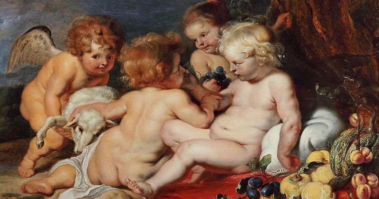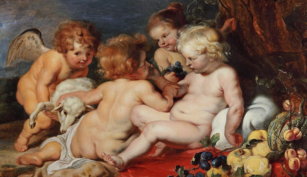 Frans Snyders (1579–1657), Peter Paul Rubens (1577–1640) og deres verksted. Olje på eiketre, 96 x 126 cm, Gemäldegalerie, Berlin. Den lille Jesus sitter på et rødt klede, og stryker den lille Johannes over kinnet. Johannes holder et lam, hans tradisjonelle attributt, med venstre arm. To små englebarn er også gjengitt, Beretningen om Johannes Døperens fødsel […]