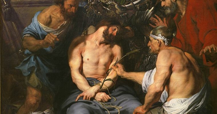 Antoon van Dyck (1599–1641). Olje på lerret, 223 × 196 cm, Museo del Prado, Madrid. Tornekronen (og purpurkappen) er sentral i Kristus-ikonografien, men de er bare nevnt i to av de fire kanoniske evangelier, Marcus 15, 17, sitert etter DNB 1930: Og de klædde ham i en purpurkappe, og flettet en tornekrone og satte på […]