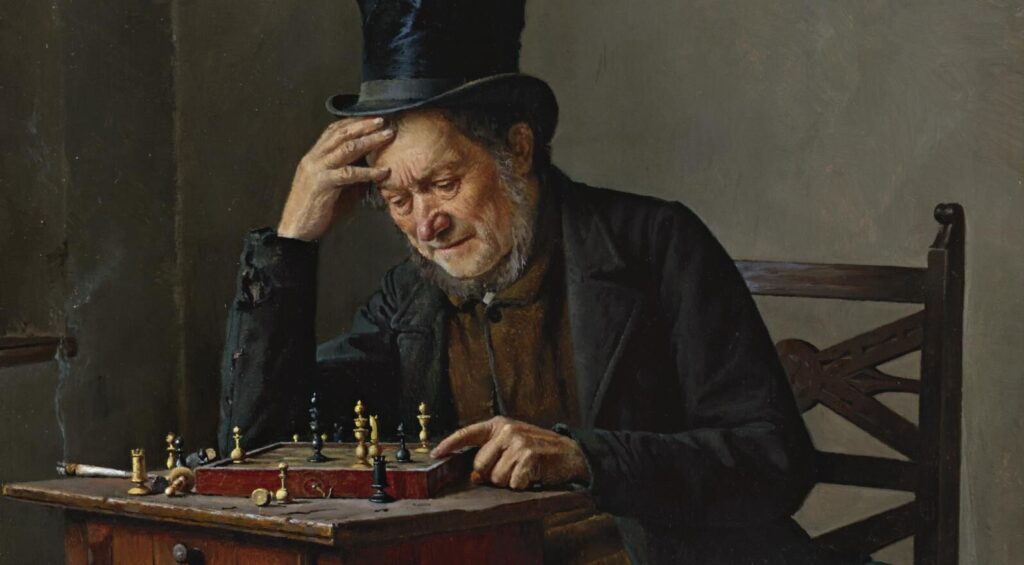 Isidor Kaufmann (1853–1921). Olje på panel, 26 x 20,9 cm, privateie. Tysk titel: Der Schachspieler – Sjakkspilleren. Isidor Kaufmann var en østerriksk-ungarsk maler, spesielt kjent for sine portretter av chasidim, en jødisk reformbevegelse grunnlagt på 1700-tallet av Baal Schem Tov (1698-1760) i det nåværende Ukraina. Bildet ble sist observert hos Sotheby’s i New York den […]