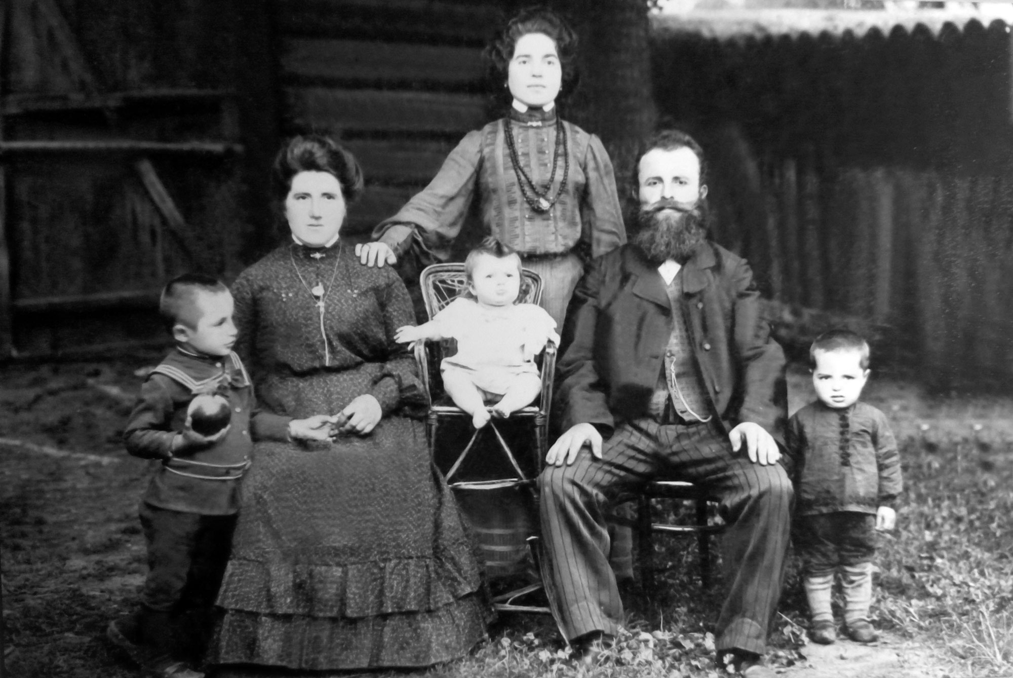 De avbildede personer er slakteren Moisej Borukhovitsj Katsevman sittende til høyre, født i Tsjernobyl, senere bosatt i Kiev, og hva vi kan anta er hans nærmeste familie. Ingen personalia er funnet for de øvrige personer.