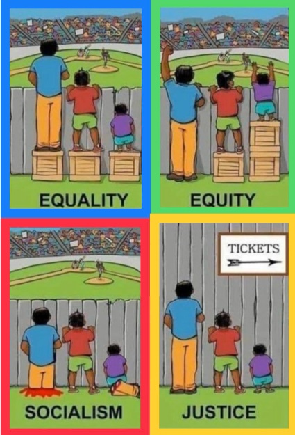 Den här illustrationen har använts flitigt av vänstern för att argumentera för att justera för ”obalans”. De svagaste ska lyftas fram: