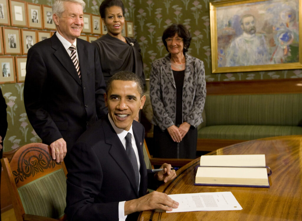 År 2009 delades priset ut till Barack Obama, mindre än ett år efter att han tillträtt som president och innan han hunnit uppnå några konkreta fredsresultat. Priset kritiserades internationellt för att vara baserat på hopp och retorik, snarare än faktiska gärningar.