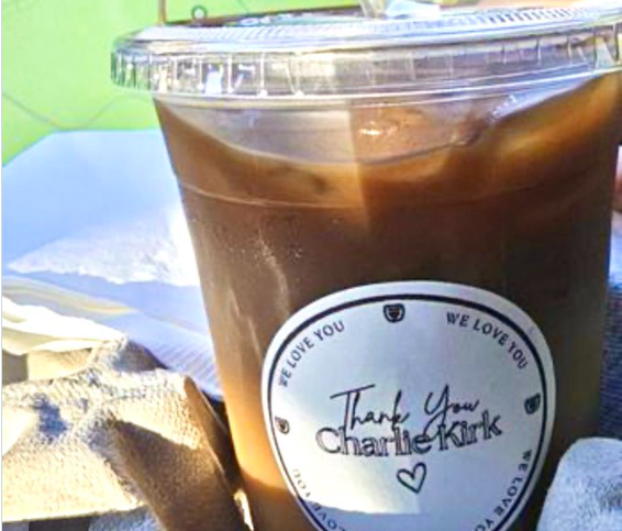 Efter mordet på grundaren av Turning Point USA satte Invita Café i Rancho Santa Fe klistermärken på sina kaffekoppar för att hedra honom.