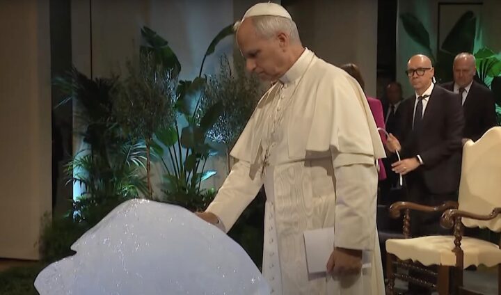 Under öppningsceremonin välsignade påven Leo ett isblock från Grönland, rapporterar Vatican News.