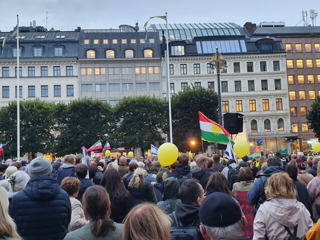De som samlats på torget representerade bredden av Sveriges befolkning – unga, gamla, småbarnsfamiljer, etniska svenskar och svenskar med invandrarbakgrund. En särskilt tydlig representation visades från svensk-iranskt håll.