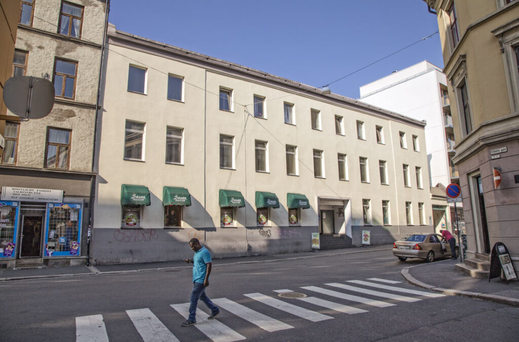 Det finns 20 olika företag registrerade på adressen Calmeyersgate 8, som nu är en parkering som väntar på miljoner i ny finansiering för att kunna påbörja byggandet.