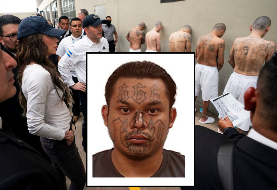 En dömd mördare som finns med på El Salvadors lista över mest eftersökta gängmedlemmar har gripits medan han vistades olagligt i USA. Ett foto från polisen visar att han har tatueringen ”666” på pannan.