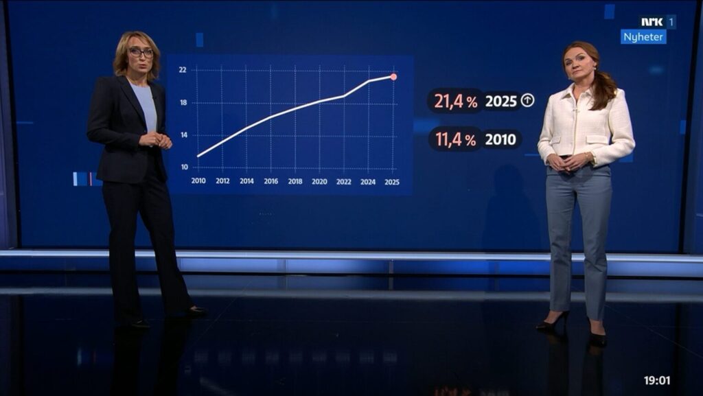 Plötsligt, en onsdagskväll i november, gör NRK något som det nästan aldrig gör: det beskriver – med egna ord och siffror – hur massinvandringen förändrar Norge till oigenkännlighet.