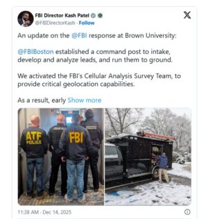 Utredningen pågår. Myndigheterna undersöker möjliga kopplingar mellan Erickson och Brown University och om han har haft långvariga psykiska problem, enligt källor. Vittnen har uppgett att gärningsmannen ropade något medan han sköt mot studenterna, men ingen har kunnat fastställa vad som sades. I nuläget är motivet okänt, och Erickson har inte åtalats eller formellt utpekats som misstänkt av polisen.
