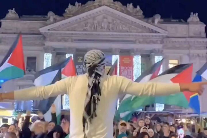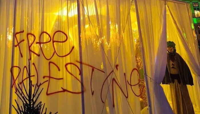 Detta, å andra sidan, är Norge: Juldekorationerna har tagits bort och ersatts med palestinska flaggor.