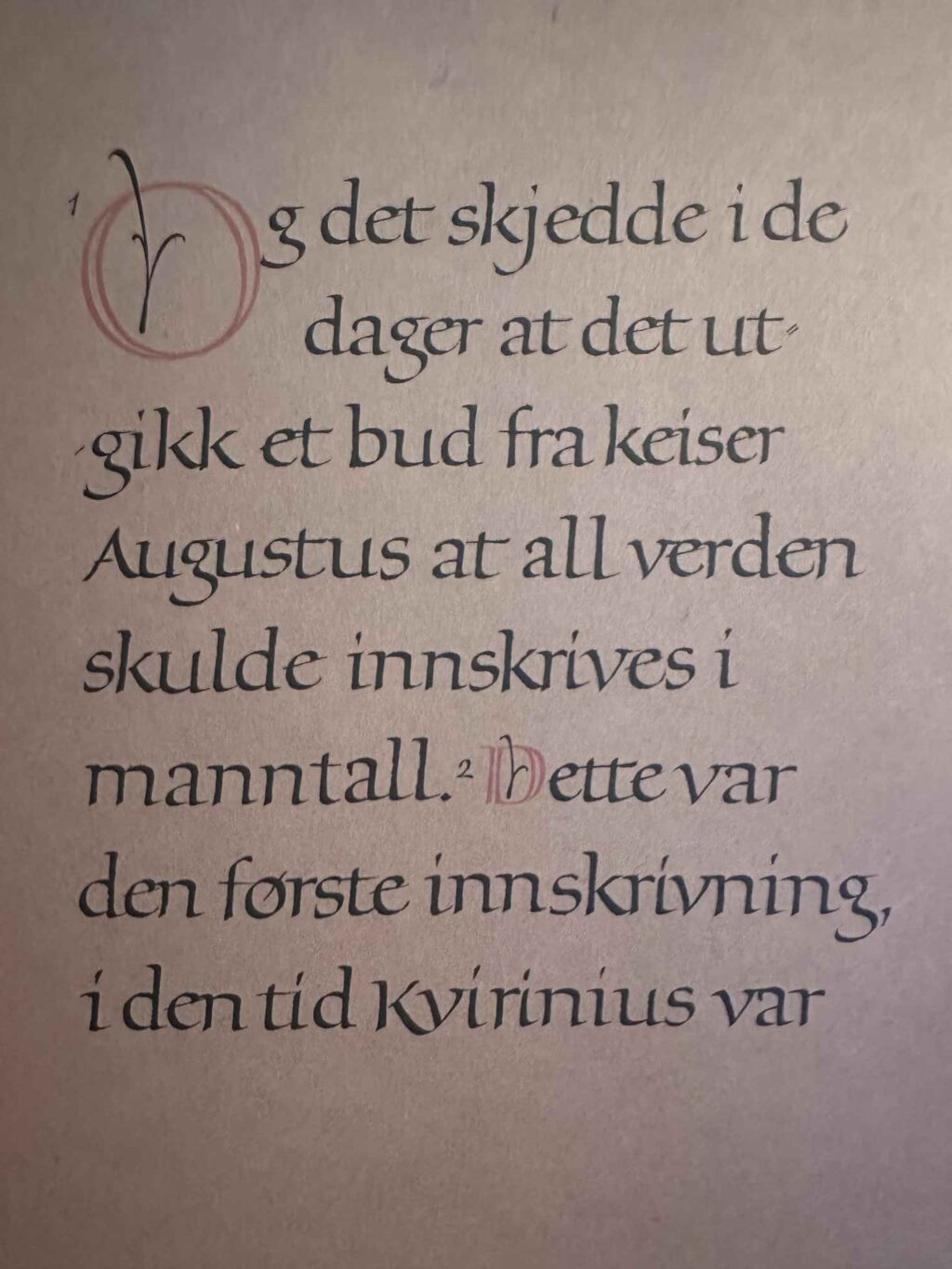 Vid den tiden utfärdade kejsar Augustus en förordning om att hela världen skulle skattskrivas. Det var den första skattskrivningen, och den hölls när Quirinius var ståthållare i Syrien. Alla gick då för att skattskriva sig, var och en till sin stad. Och Josef, som genom sin härkomst hörde till Davids hus, begav sig från Nasaret i Galileen upp till Judeen, till Davids stad Betlehem, för att skattskriva sig tillsammans med Maria, sin trolovade, som väntade sitt barn.