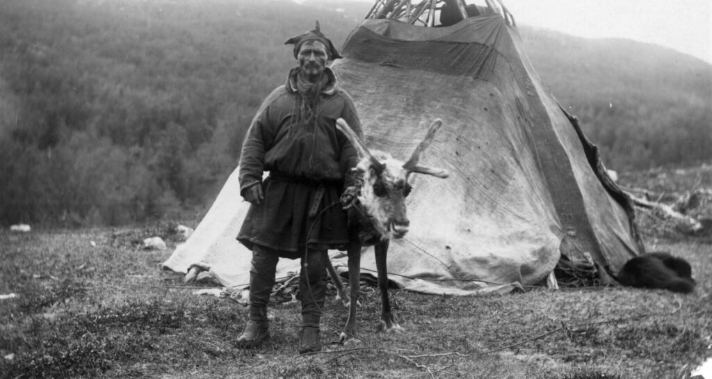 Bildet er antagelig tatt ved Lyngseidet i Troms fylke en gang i 1909.