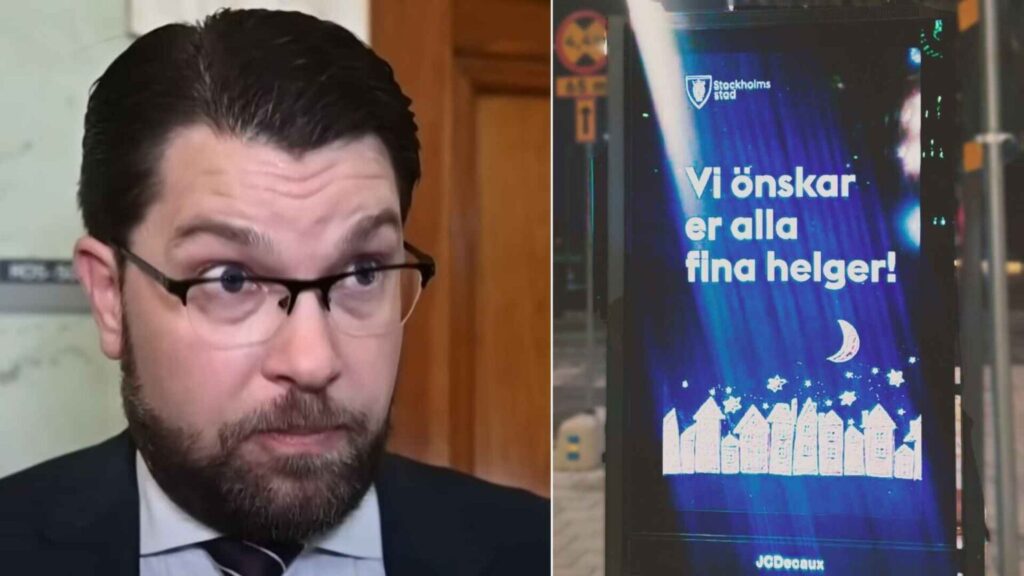 ”Vi önskar alla en underbar helg!” står det på de digitala affischer som satts upp runt om i Stockholm av den socialdemokratiska kommunen.