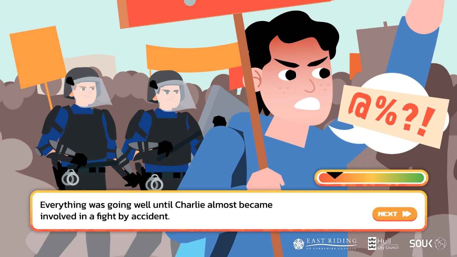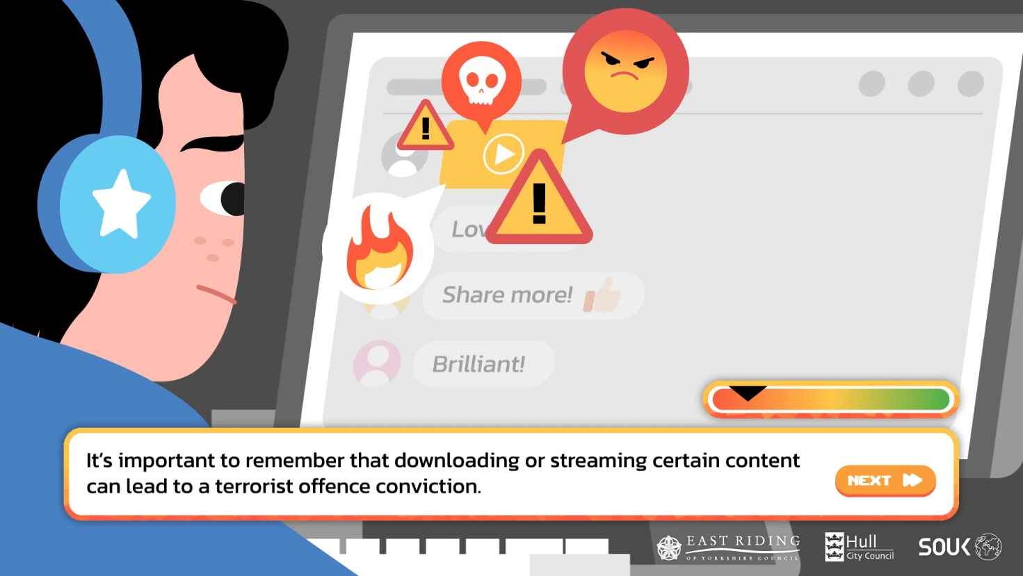 Efter 9/11 inrättade Storbritannien en organisation vid namn Prevent för att bekämpa radikalisering. Vissa tyckte att det skulle vara en bra idé att skapa ett spel som lär ungdomar att känna igen extremism. Idén var: ”Låt barnen klicka sig igenom olika val och se hur radikalisering sker!” – ett slags välj-ditt-eget-äventyr-spel om vad som är rätt och fel.