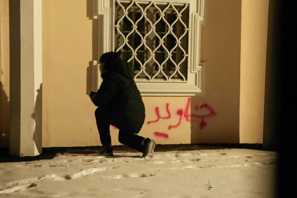 Sent på söndagskvällen tog sig en grupp aktivister in på den iranska ambassadens område i Oslo. Den officiella flaggan togs ner och ersattes, och slagord till stöd för den fallna monarkin sprayades på väggarna.