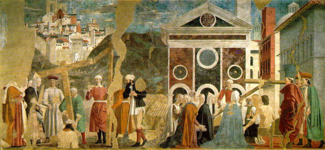 Ett av kunstnerens best kjente verker, Legenden om det sanne kors, finner vi i koret i Basilica di San Francesco i Arezzo. Som vi kan se, er ikke bevaringstilstanden den aller beste.