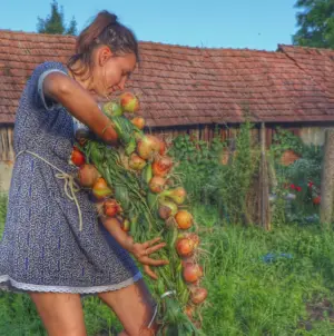 Alexandra arbetar med hemodlade lökar. Foto: Farma Emigranti