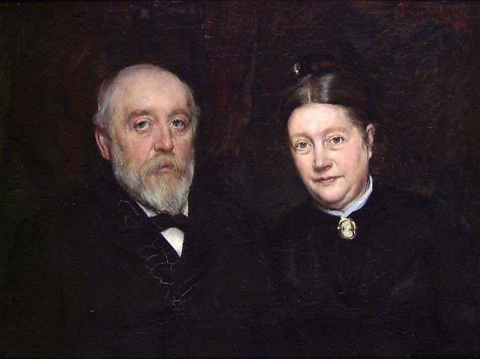 Portrettmodellene er kunstnerens foreldre, Hilda Margretha f. Haak (1834–1917) og arkitekt og ingeniør Halvor Heyerdahl (1825–1900).