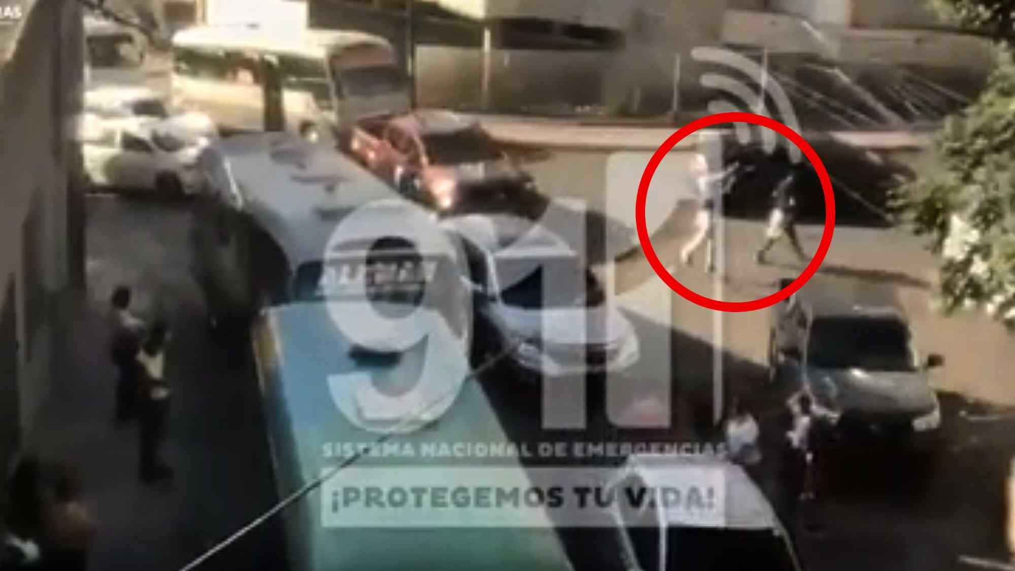 Mitt i trafiken: Polisens övervakningsvideo visar den misstänkte gärningsmannen kasta något genom luften. Foto: Sistema Nacional de Emergencias 911