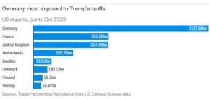 Tysklands exponering mot den amerikanska marknaden verkade en gång vara en styrka, men har nu blivit en sårbarhet. Detta följer ett mönster av europeiskt överberoende av mäktiga och instabila partner, inom allt från finans till energi.